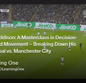 Discover how James Maddison showcased elite decision-making and intelligent movement in Tottenham's clash with Manchester City. This analysis dissects his role in the second goal, highlighting his technical precision, tactical awareness, and overlap run to support play in creating and finishing the opportunity. A must-read for coaches looking to enhance their understanding of attacking dynamics and spatial exploitation.